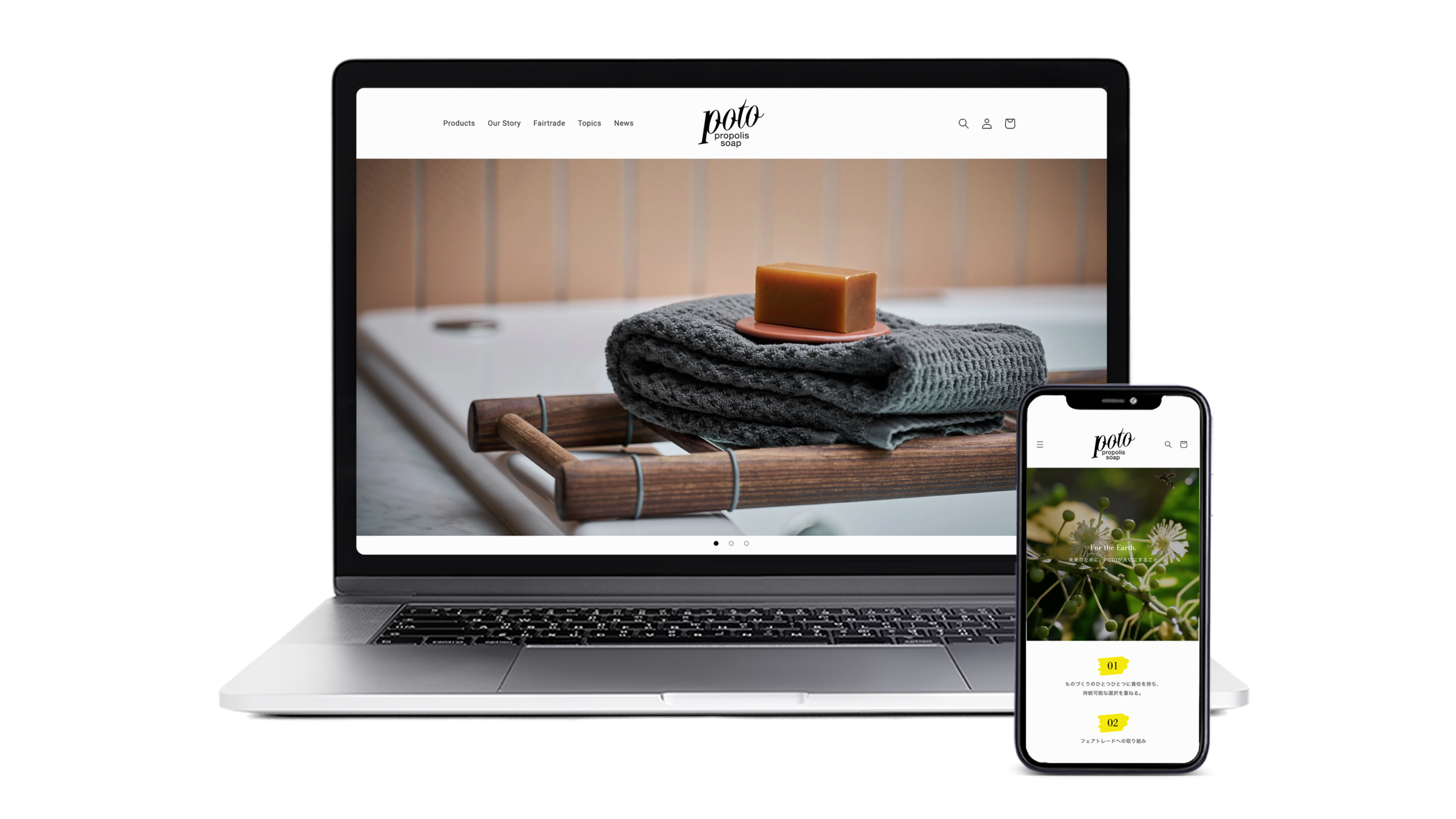 Hiro Company is the exclusive Japanese distributor for drom fragrances international (now part of the Swiss Givaudan Group), a Munich-based fragrance house founded in 1975. To commemorate their 50th anniversary, I provided total creative direction for the launch of their new natural soap brand, “POTO.”